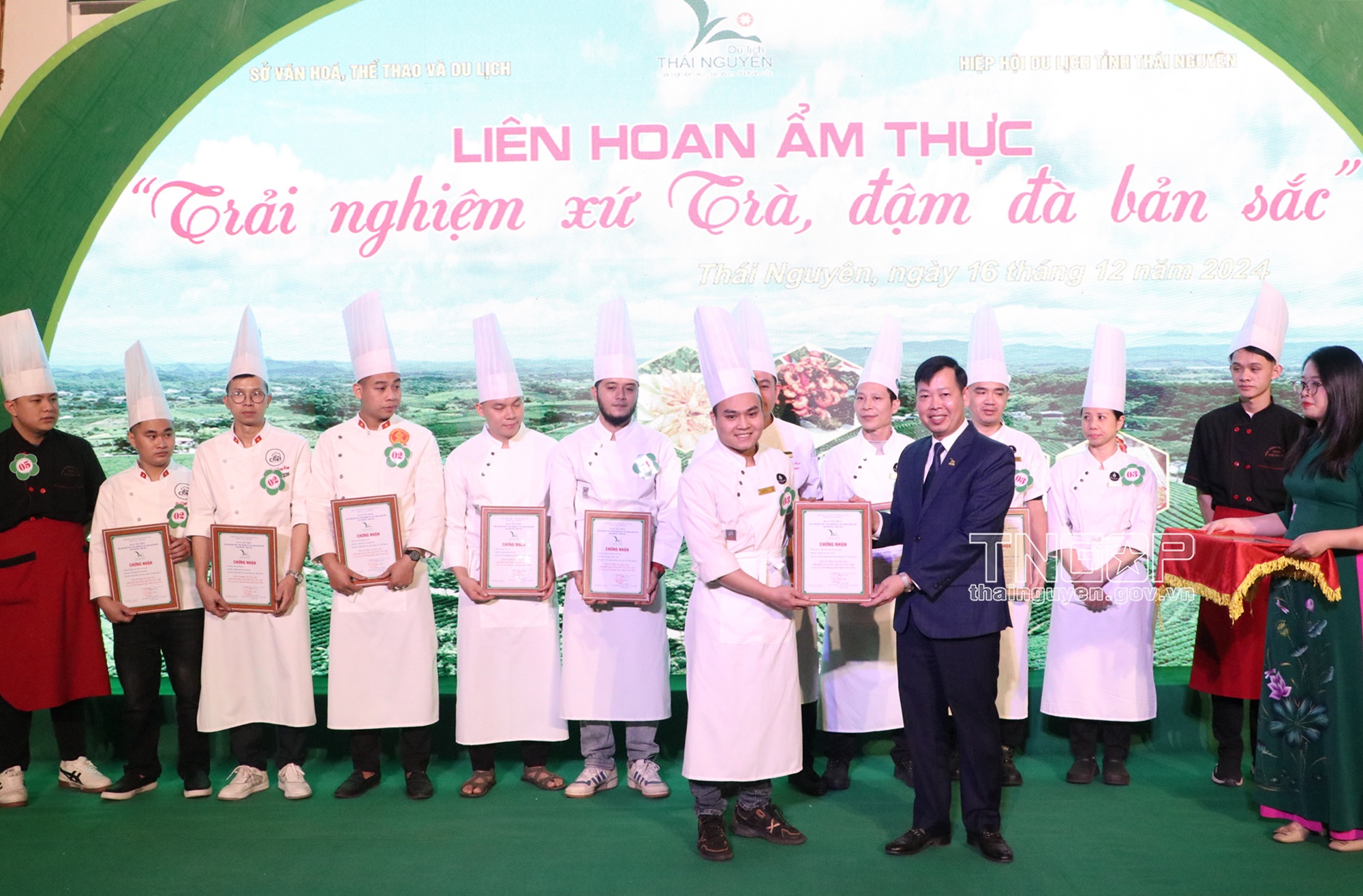 축제 조직위원회는 참가 팀에 Thai Nguyen 차 재료로 만든 독특한 음식 153개 인증서를 수여