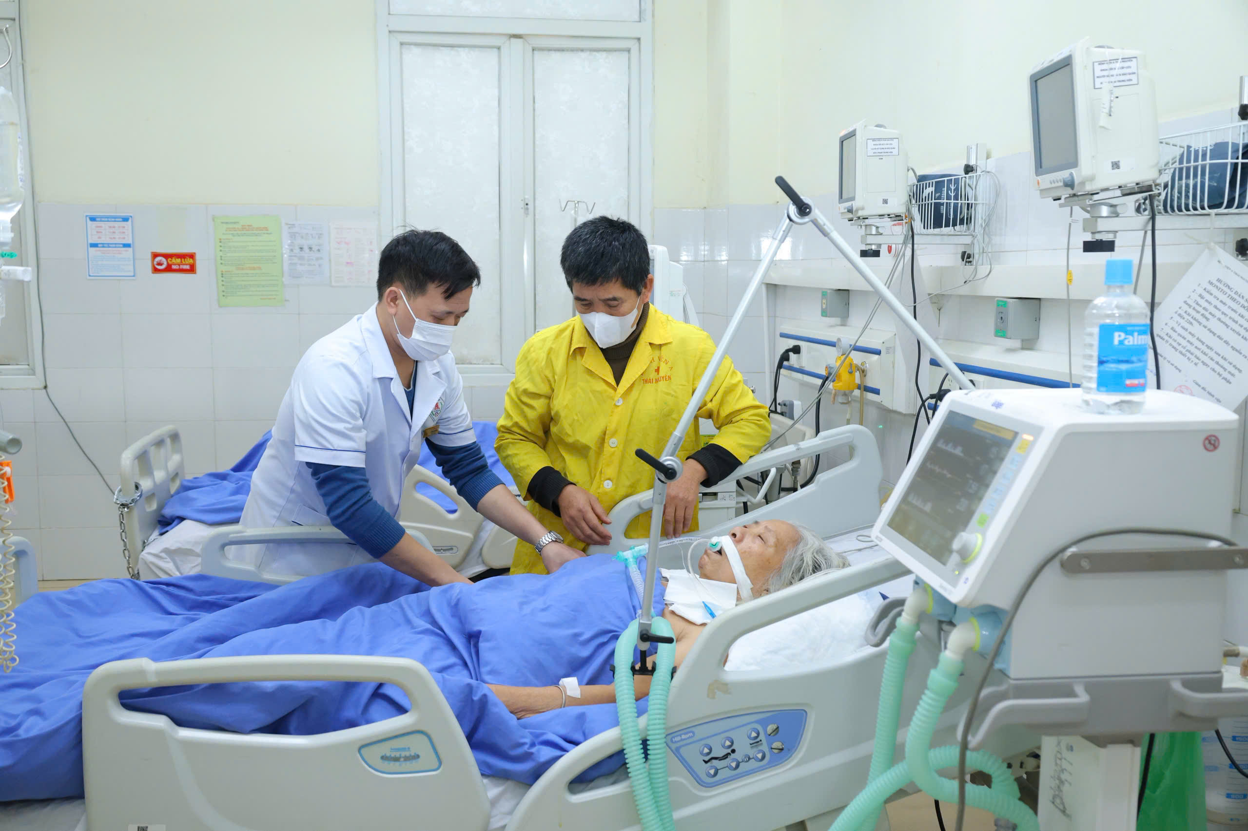 타이응우옌 A병원 의사가 중환자실에서 환자를 돌보고 있다 (사진: Thanh Chung)