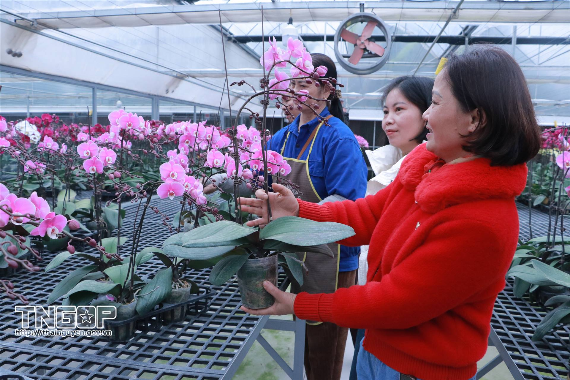 2022년에 설립된 Kim Tien Thao 화훼 생산 협동조합은 성의 대표적인 호접란 집단 재배 모델 중 하나다. 초기의 소규모 재배에서 출발해 농가들이 과감히 협력 체계를 구축하고 고부가가치 품종인 호접란을 상품화 생산에 도입함으로써 가정경제의 새로운 발전 방향을 열었다. 현재 4개 농가가 참여하고 있으며 약 20명의 상시·계절 근로자에게 일자리를 제공하고 있다. 평균 소득은 월 900만~1,000만 동 수준이다. 약 3,000㎡ 면적에서 이번 설 명절을 위해 18개 품종, 5만여 그루의 호접란을 재배하며 다양해진 시장 수요에 대응하고 있다.