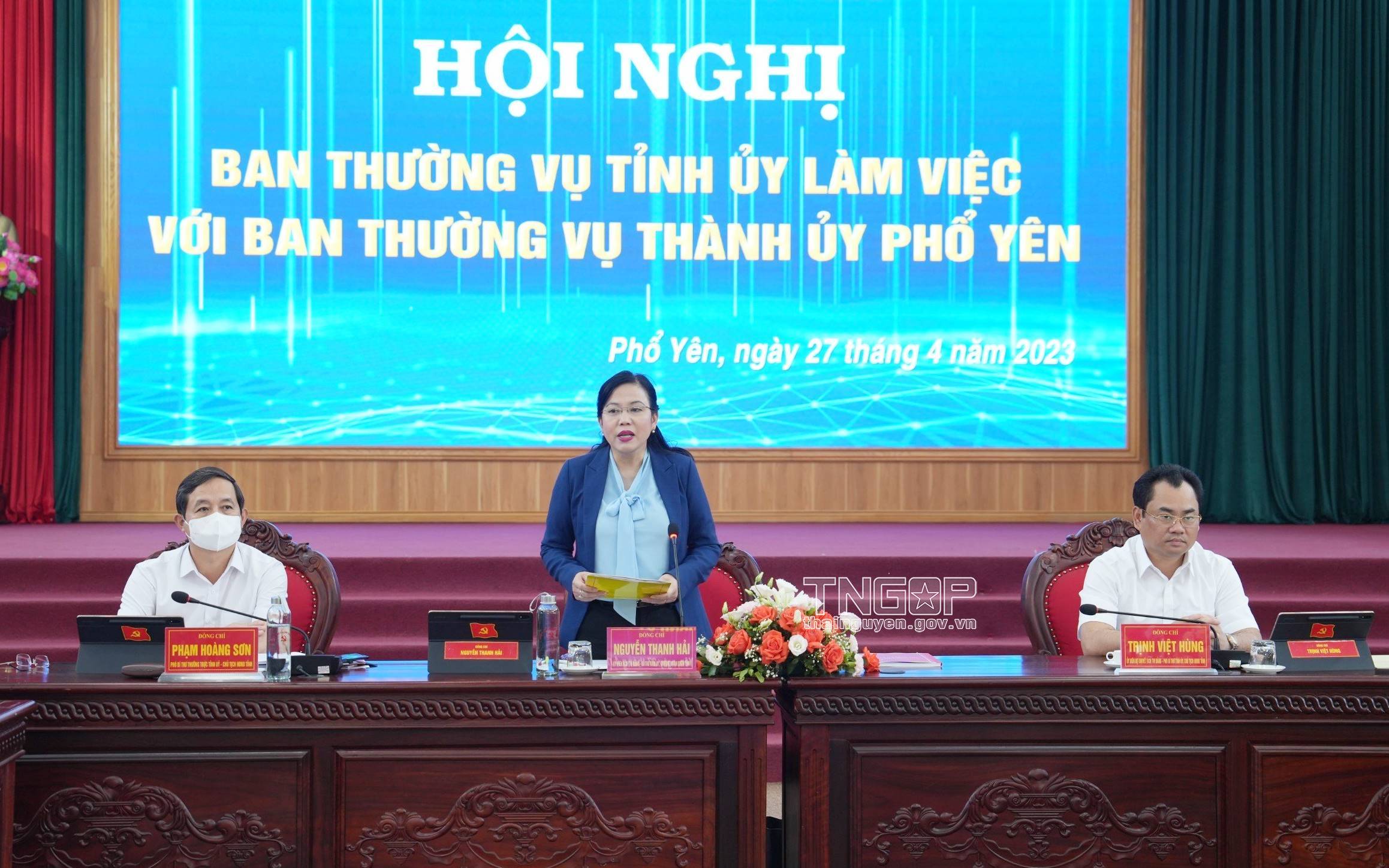 도당집행위원회는 Pho Yen시가 2025년에 II급 도시가 되기 위한 건설과 발전에 관하여 Pho Yen당집행위원회와 회의했음.