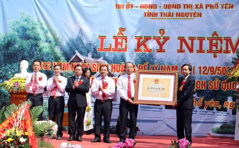 2. 2015년 10월 Pho Yen소시는 Ly Nam De왕체 탄생 1512주년을 기념하여 엄숙하게 기념식을 개최했으며 Tien Phong면의 Muc궁전과 Huong Ap사원의 국립 역사 유적지 인정을 받았다. 베트남 최고의 역사학자들은 유적지와 전설의 문헌에 따르면 우리 나라의 첫 번째 왕체인 Ly Nam De가 Pho Yen, Tien Phong면, Co Phap동네에서 태어났다고 결론지었다. 중요한 유적지로써 2019년에 성인민위원회는 “Pho Yen소시, Tien Phong면, Ly Nam De유적지 보유, 증축 및 가치 발휘의 통합 기획”의 승인에 관하여 1228호의 결정을 발행했다. 따라서, 유적지는 통합으로 54,06 ha의 면적에서 구획되며 현재부터 2030까지 단계 시공된다. 2020.5월에 문화체육관광국은 Pho Yen소시와 협력하여 Pho Yen소시, Tien Phong면에서 Ly Nam De왕체 사당 복원, 증축 프로젝트 착공식을 개최하도록 했다.