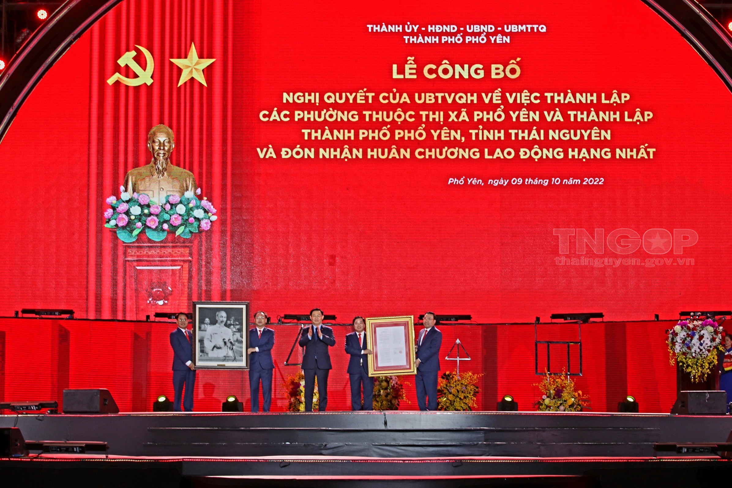 Pho Yen소시 직하 동과 타이응웬성 직하 Pho Yen시 창립에 관하여 국회상임위원회의 469/NQUBTVQH15호 결정 발표식