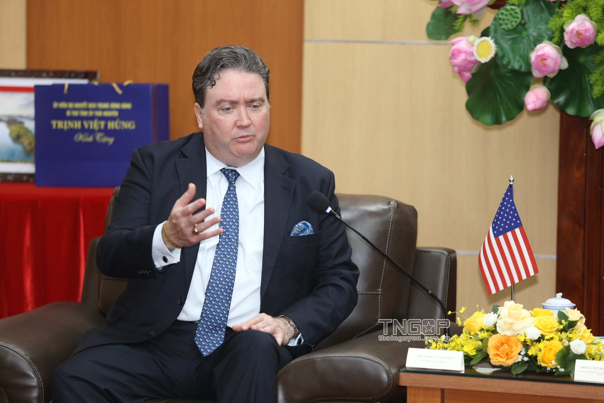 Marc E. Knapper 대사는 Thai Nguyen성의 투자 유치 잠재력과 아름다운 풍경에 대한 인상을 표현했음