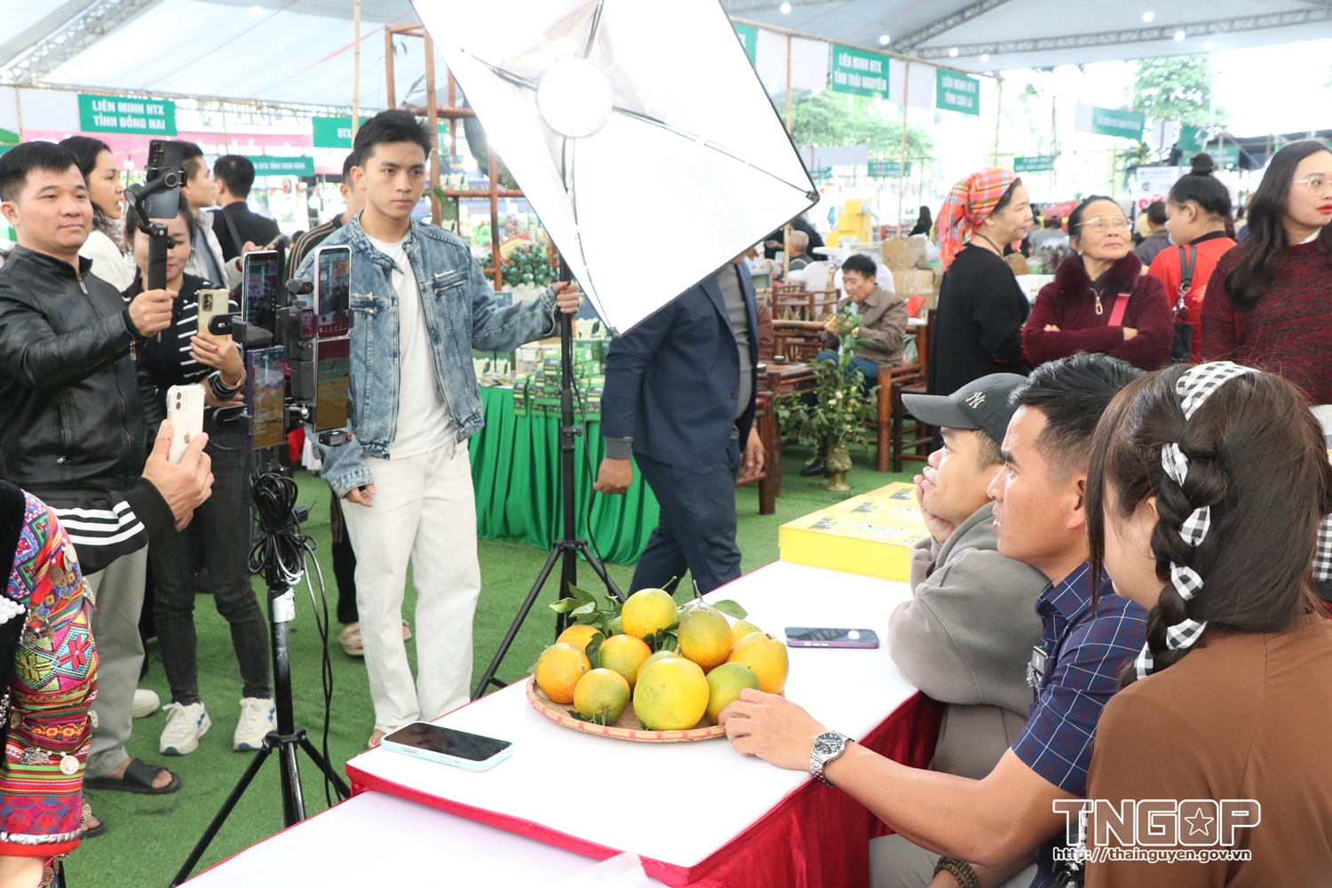 타이응우옌성 협동조합 연맹이 주간 행사장에서 라이브 스트림 세션을 진행했다