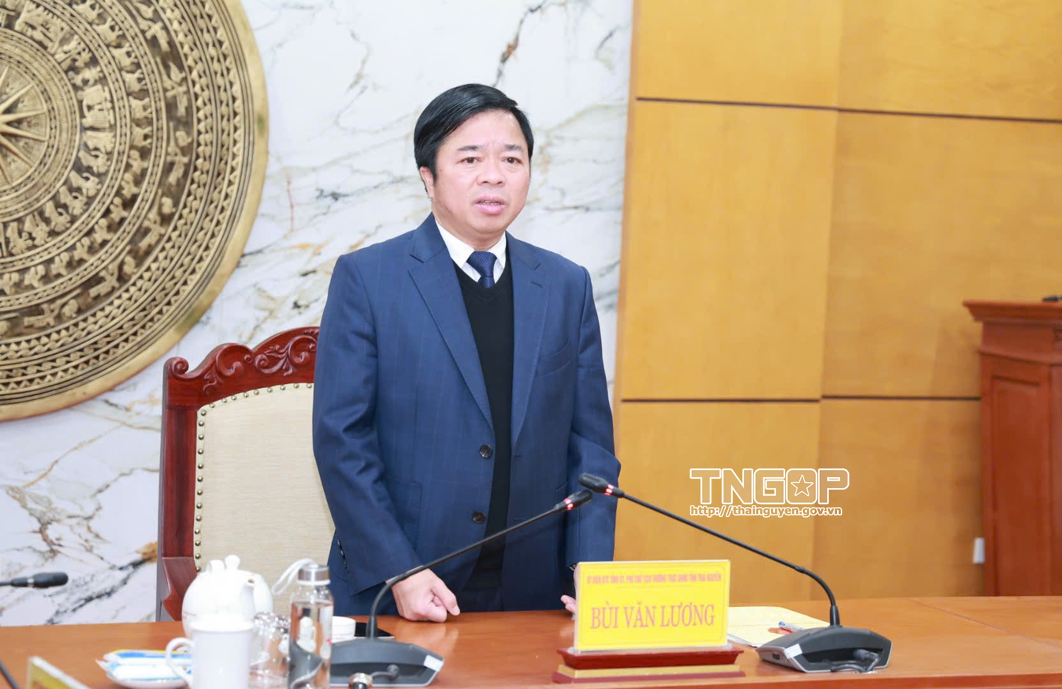 부이 반 르엉(Bui Van Luong) 성 인민위원회 상임 부위원장이 회의에서 지시 발언을 하고 있다