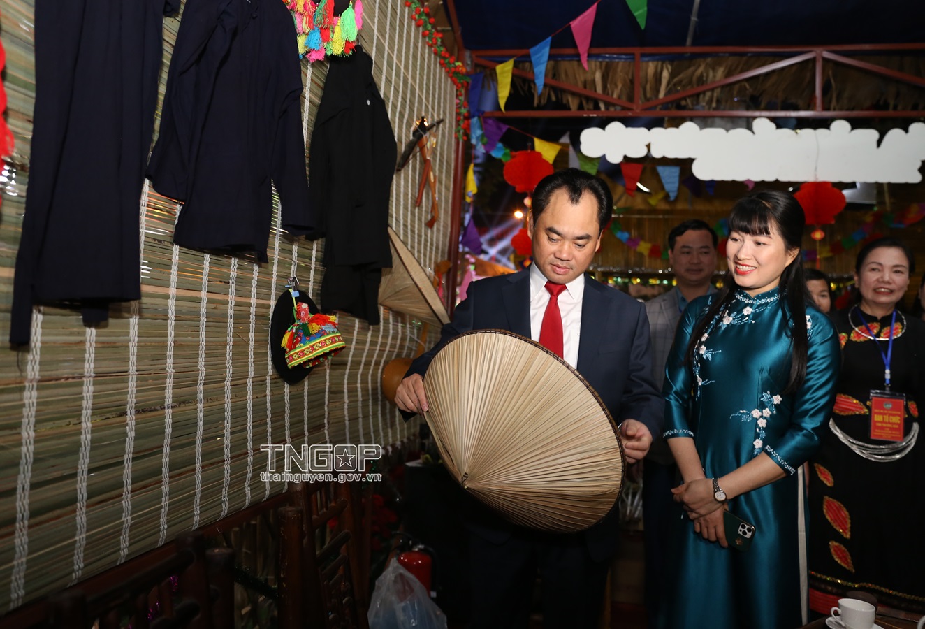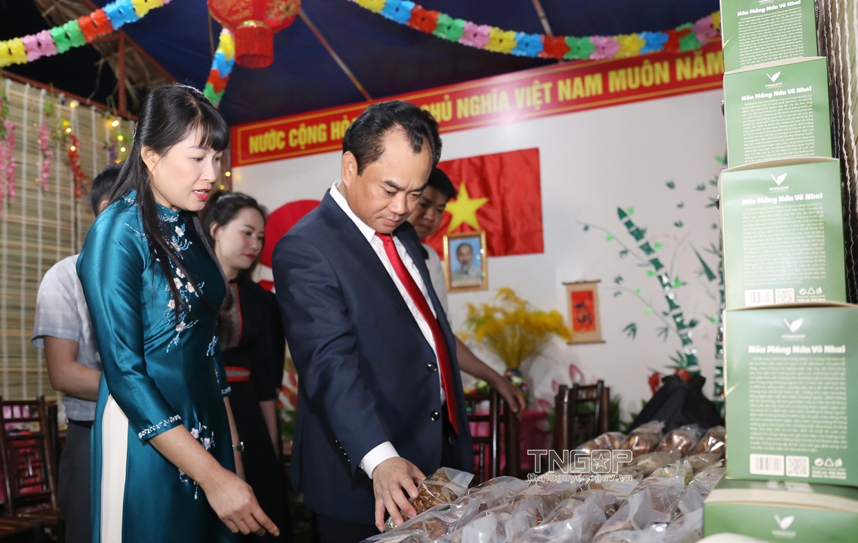 찐 비엣 훙(Trinh Viet Hung) 당 중앙위원회 후보위원 겸 성 당위원회 서기가 Vo Nhai 현 소수민족 OCOP 제품을 전시하는 문화 공간과 부스를 방문하고 있다.
